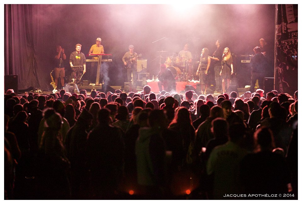 4 Plan-les-Ouates, le 15 août 2014. 8ème édition du Plein-les-Watts Festival consacré au Reggae. Nuttea & the B-Siders Band sur la Grande Scène.©Pierre Albouy |